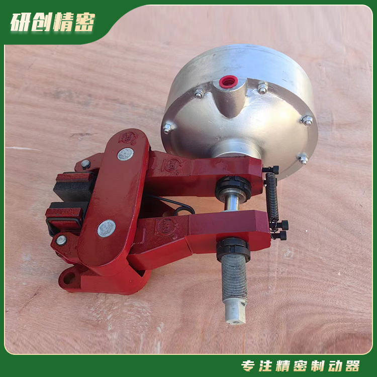 气动盘式安全制动器产品性能安全可靠,制动灵敏,动作频率高,使用寿命长。主要用于机器设备的停止安全,气动制动器在没有通气的情况下为闭合状态,当通气时活塞杆会在气压的作用下迅速的向气缸内收缩,左右俩测制动臂会在复位弹簧的作用下带动制动瓦块打开设备正常工作,简单说就是断气制动,通气打开,因此气动盘式制动器适用于一些对安全防护有要求的一些场合